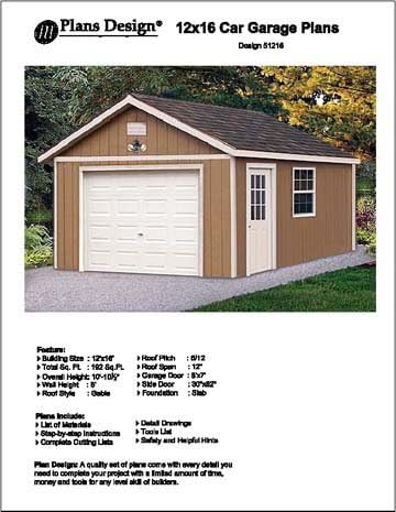 12 X 16 Car Garage Project Plans Design 51216 Woodworking