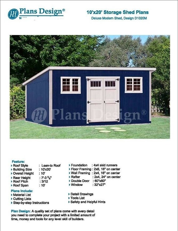 10 X 20 Deluxe Back Yard Storage Shed Project Plans Etsy