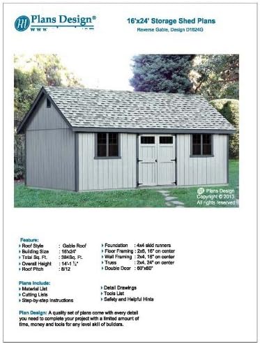 Utility Shed Building Plans Blueprints Do It Yourself Diy 16 X 24
