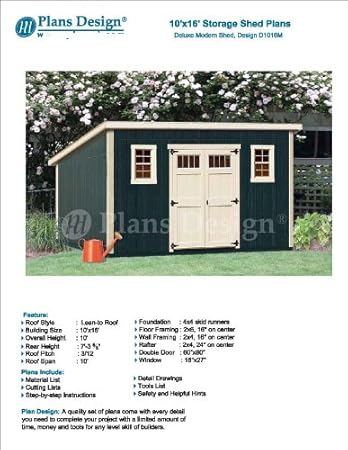 10 X 16 Deluxe Shed Plans Modern Roof Style Design D1016m