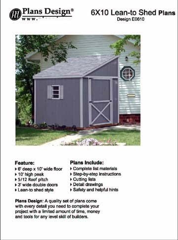 Storage Shed Plans Lean To Roof Style 6 X 10 Plans Design