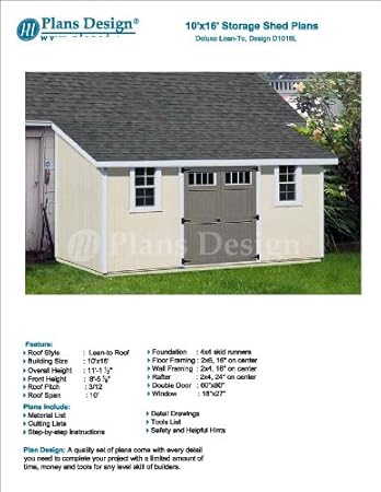 10 X 16 Deluxe Back Yard Storage Shed Project Plan Lean To
